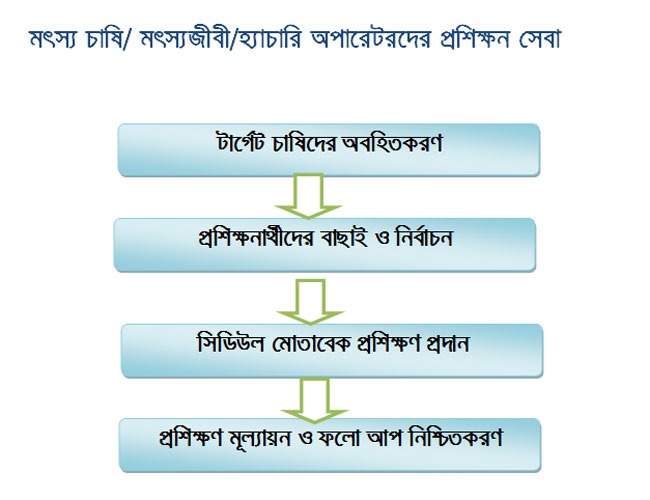 | ৭ | মৎস্যচাষি/মৎস্যজীবী/উদ্যোক্তাদের প্রশিক্ষণ সেবা প্রদান | দেখুন |